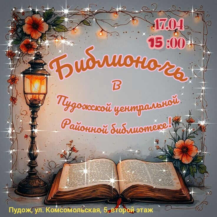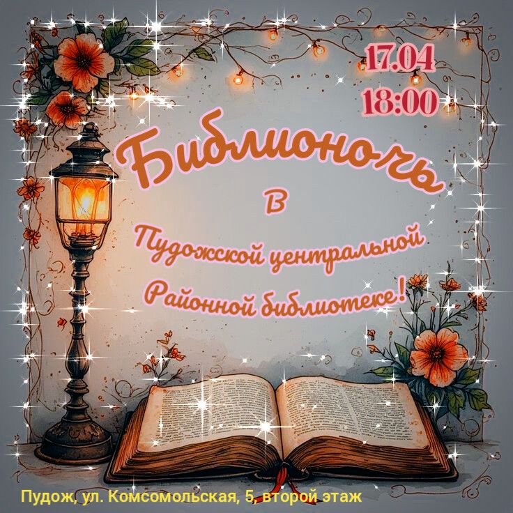 Ежегодная акция «Библионочь» в 2026 году пройдет в России в 15-й юбилейный раз. Библиотеки, литературные музеи, культурные центры по всей стране представят специальную программу: встречи с писателями, лекции, экскурсии, поэтические чтения, творческие мастер-классы. Тема Библионочи в этом году – "Сила единства". Пудожская центральная районная библиотека традиционно принимает участие в замечательной акции, цель которой – популяризировать чтение, показать, что библиотека – это культурный, коммуникативный центр для развития личности. Мы готовимся к мероприятию и очень хотим, чтобы вечер 17 апреля запомнился вам, наши дорогие читатели!